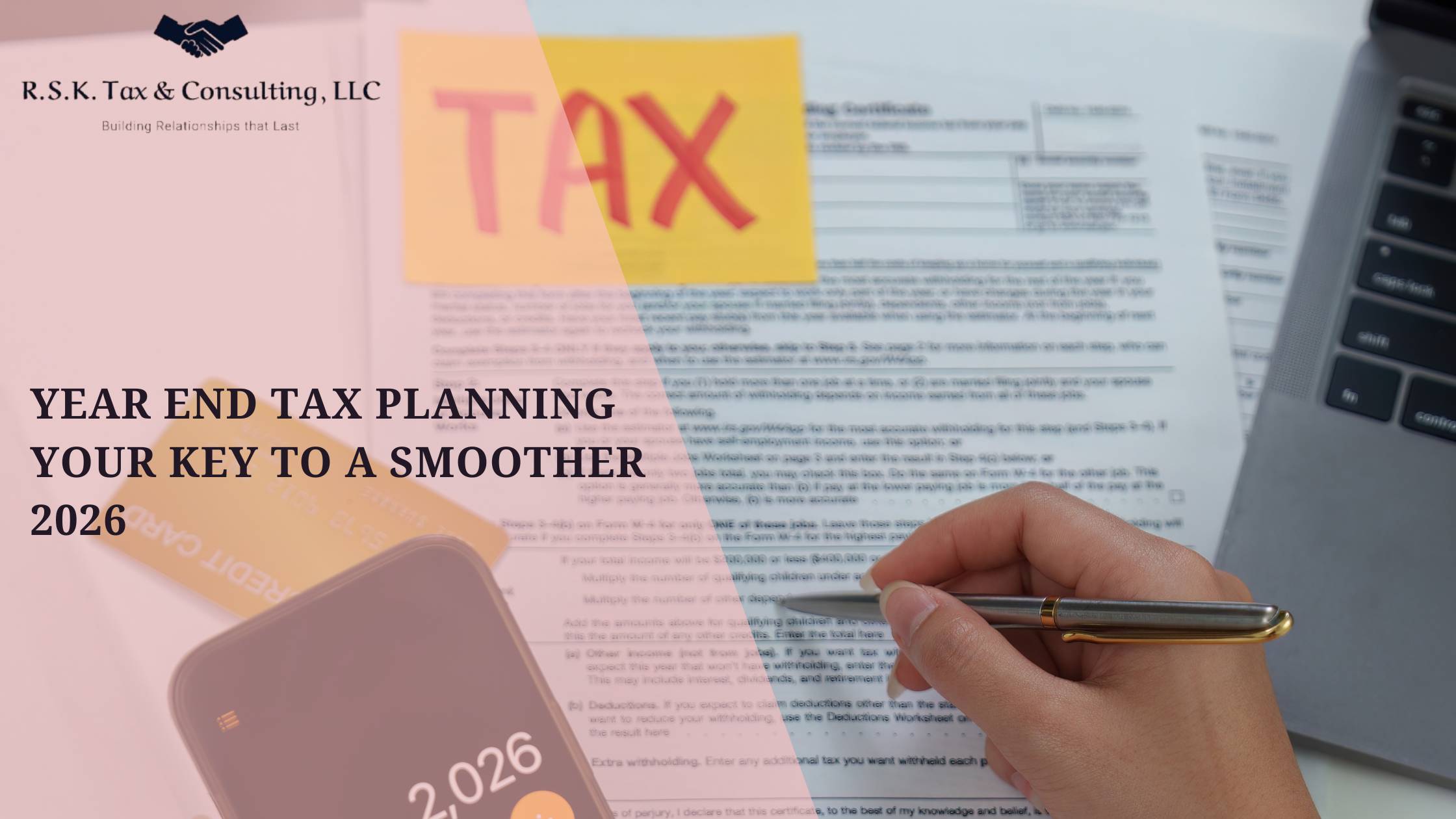 Navigating taxes as a newly established business can be challenging, but understanding your obligations and maintaining organized records can simplify the process. At RSK TAX & CONSULTING, LLC, we are dedicated to providing personalized guidance and support to help you manage your tax responsibilities and set your business up for success.